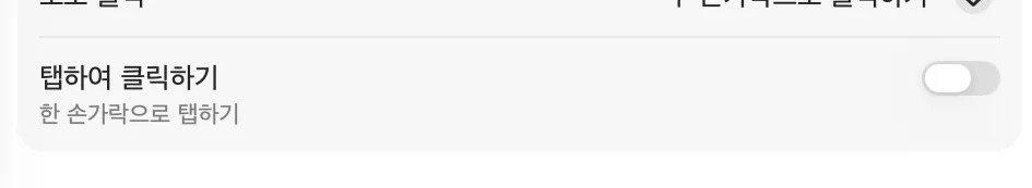 그니까 트랙패드를 꾹 눌러서 딸깍해서 클릭 하지 않아도 톡 쳐서 클릭할 수 있게 해주는 설정이다.
